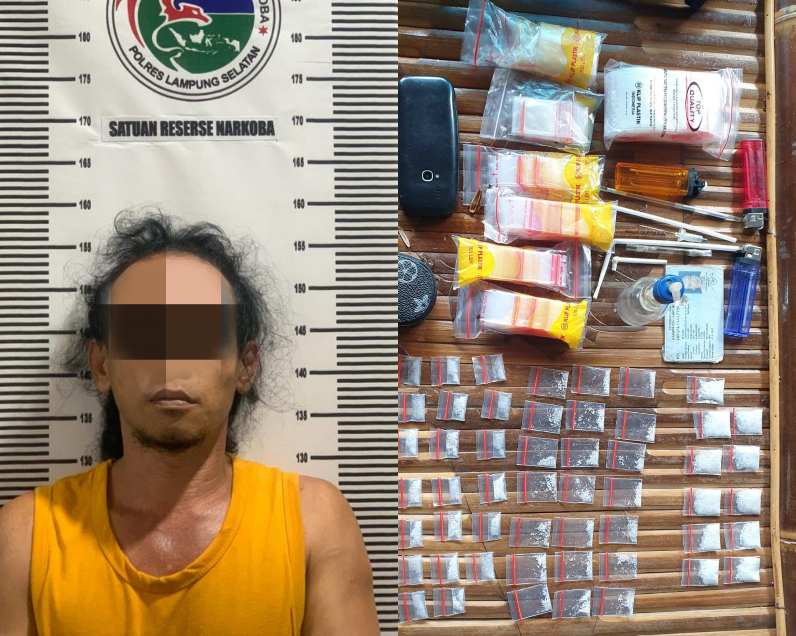 Selain menangkap pelaku, pelaku petugas kepolisian dari Sat Narkoba Polres Lamsel yang dipimpin oleh Ipda M. Imam Farid. S juga berhasil mengamankan barang bukti (BB) berupa 52 (lima puluh dua) klip yang berisikan Narkoba jenis Sabu, seperangkat alat hisap sabu (Bong) , 1 (satu) buah pirek kaca yang berisikan sabu, 4 (empat) buah sedotan, 3 (tiga) buah korek api, 6 (enam) buah kantong plastik klip kosong, dan 2 (dua) buah Handphone ditemukan dikamar pelaku saat dilakukan penggeledahan dirumahnya.