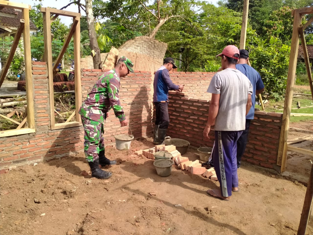 Lampung Selatan, PPSIBER88.CO.ID_Wujud kepedulian dan kebersamaan dalam meningkatkan kerja Sertu Haryansyah Babinsa Koramil 421/09 Kec. Tanjung Bintang dan Perangkat Desa Budi Lestari Bergotong royong membangun rumah Ustadz Abdul Rosyid didusun Sraten 2 Desa Budi Lestari pada hari Jumat, 3/3/23.