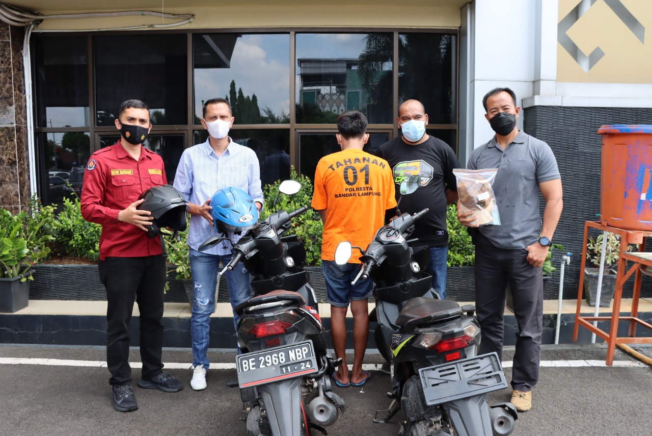 Pelaku Merupakan Residivis Kasus Yang Sama dan Pelaku Juga telah melakukan 3 kali pencurian sepeda motor di wilayah Kota Bandar Lampung kemudian Pada Saat penangkapan Pelaku didapati juga dua unit sepeda motor yang oleh pelaku tidak bisa menunjukkan bukti kepemilikanya sehingga dilakukan pengecekan dan benar bahwa motor tersebut milik warga Kota Bandar lampung Yang pernah Hilang Dicuri, sehingga Motor tersebut diamankan untuk selanjutnya di lakukan penyelidikan lebih lanjut. Ucap Kanit Ranmor.
