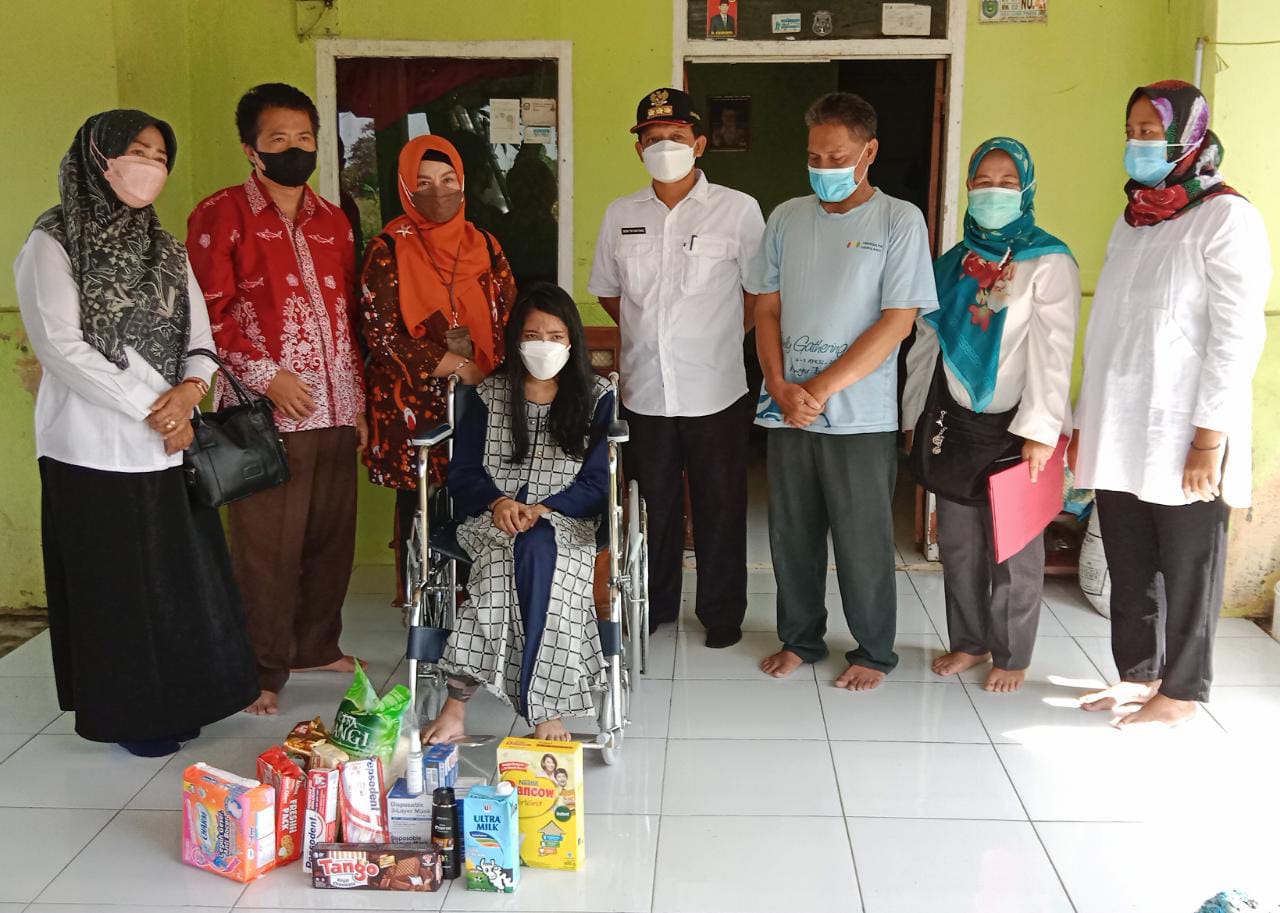 Kedatangan Dinsos dan tim Dokmaru ke rumah Erly selain melihat kondisi,tim tersebut memberikan bantuan berupa sembako juga kursi roda.