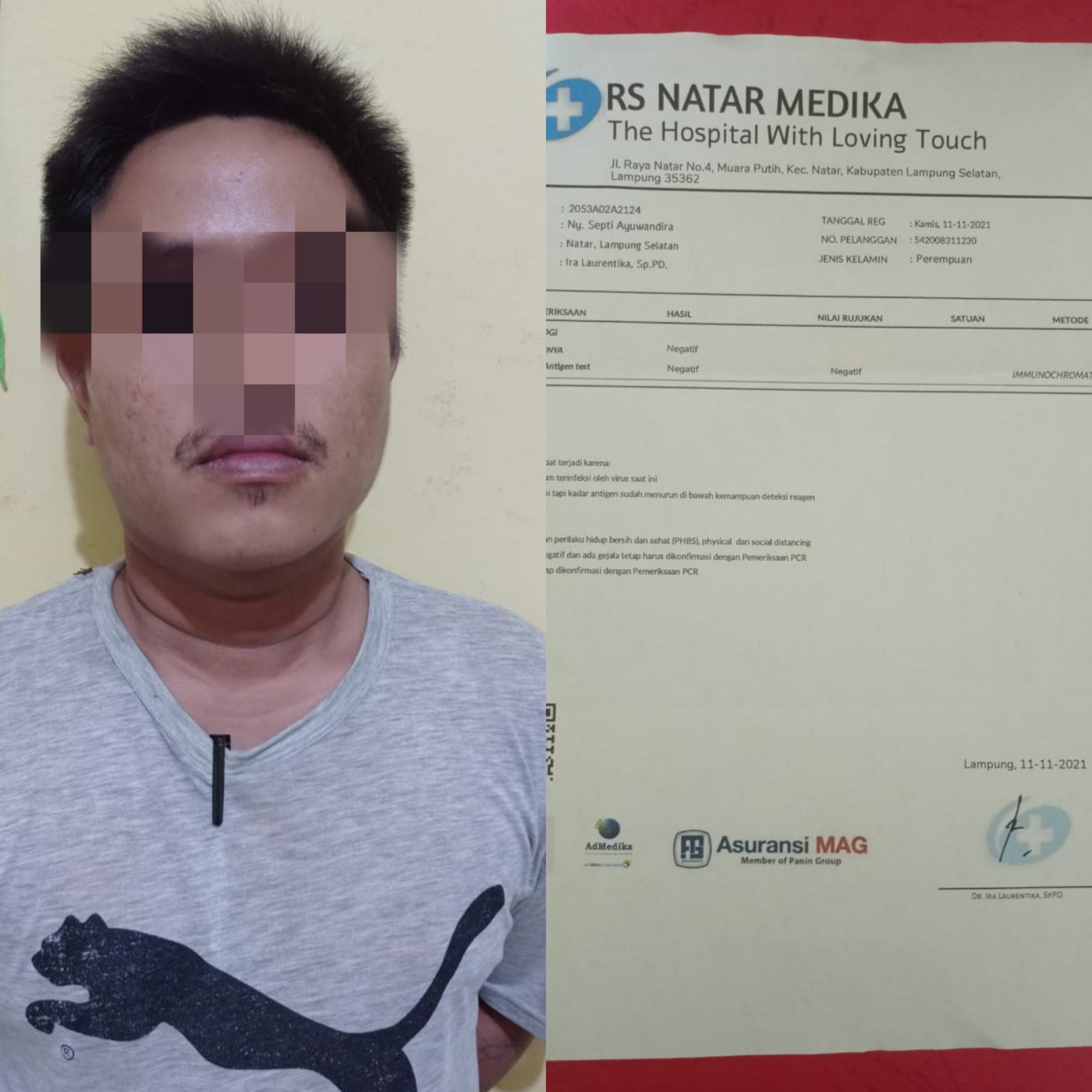 Pelaku yang diketahui bernama MUL (32) warga Jln.Pajajaran Gg.Al.Ikhlas No.24 Lingkungan I Rt.001/001 Kelurahan Jagabaya II, Kecamatan Way Halim Bandar Lampung saat ditangkap tidak dapat mengelak lagi, setelah petugas kepolisian dari Polsek Jatiagung, yang sebelumnya melakukan penyamaran sebagai penumpang dan berhasil membongkar aksi kejahatannya melakukan penjualan surat keterangan Rapid Antigen palsu.