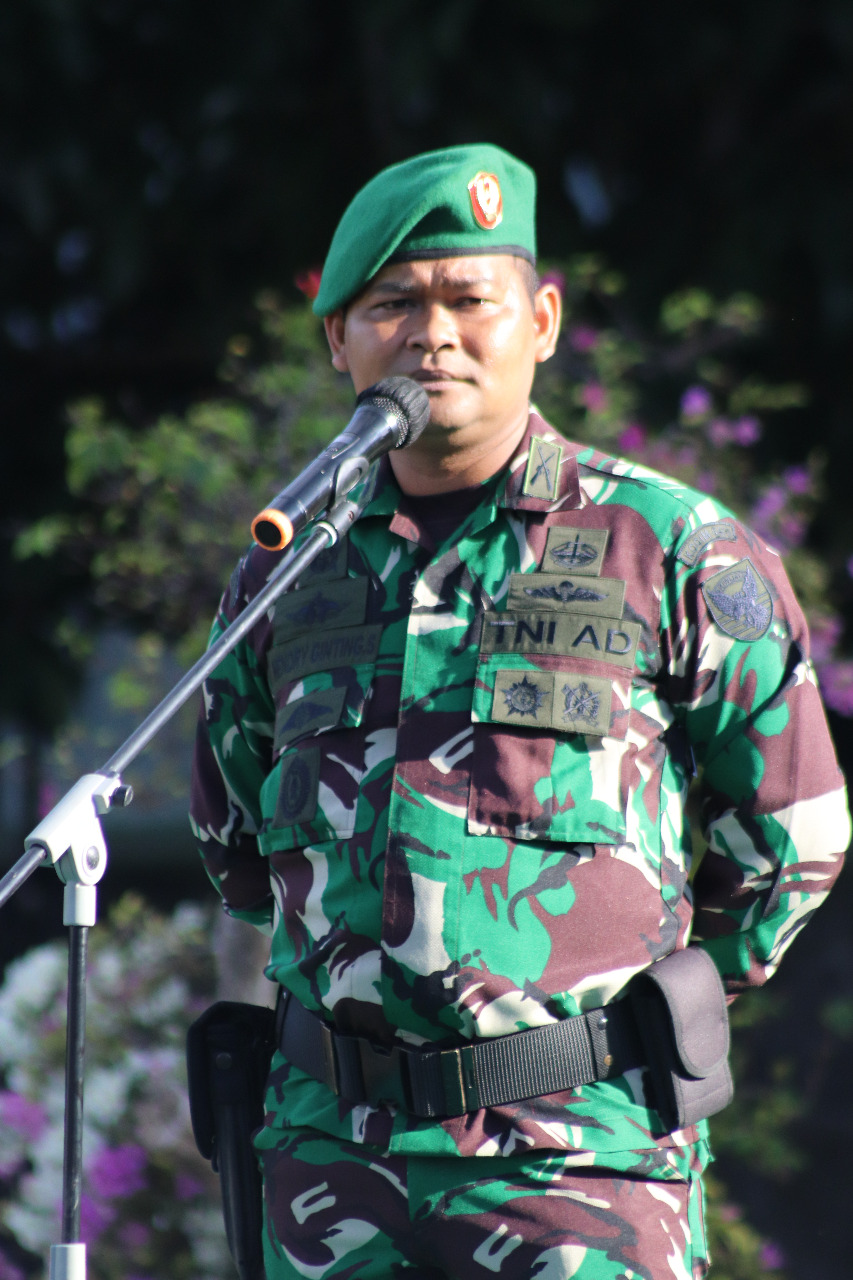 Bandar Lampung, SIBER88.CO.ID_Kepala staf Kodim (Kasdim) 0410/ Kota Bandar Lampung Letkol Infanteri (Inf) Hendry Ginting pimpin upacara bendera di Markas Kodim 0410/KBL Jln. Imam Bonjol, Kota Bandar Lampung, pada Senin 09 Januari 2023.