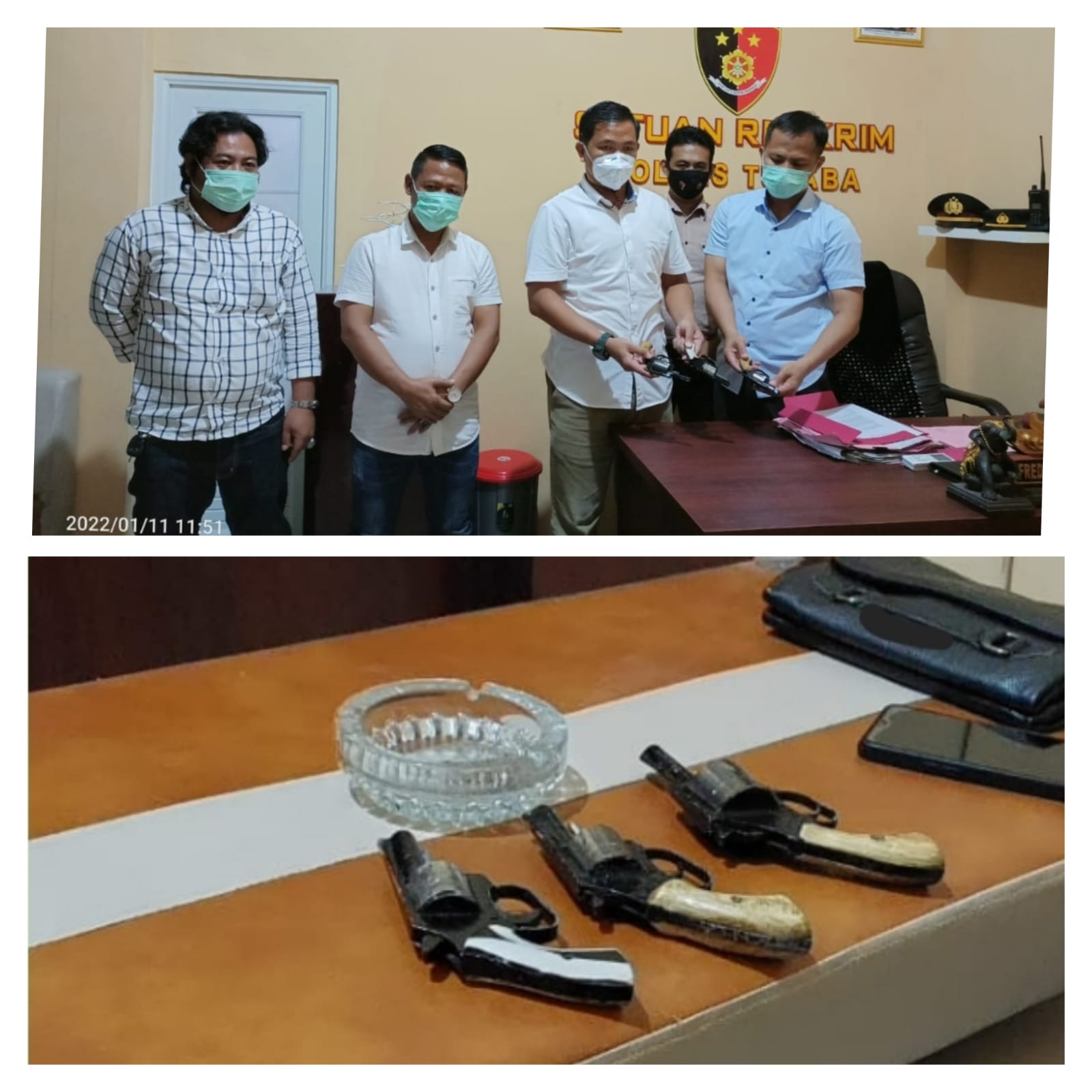 Kapolres Tulang Bawang Akbp Sunhot P. Silalahi, S.I.K, M.M melalui Kasat Reskrim AKP Fredy Aprisa Putra Parina S.H .M.H mengatakan bahwa Satreskrim Polres Tulang Bawang Barat telah menerima penyerahan 3 (tiga) pucuk senjata api Rakitan ( Senpi ) jenis Revolper dari salah satu masyarakat tiyuh kibang budi jaya kec Lambu Kibang yang didampingi oleh Hendra Bajil Rastan yang juga merupakan tokoh pemuda kecamatan lambu kibang kabupaten Tulang Bawang Barat.
