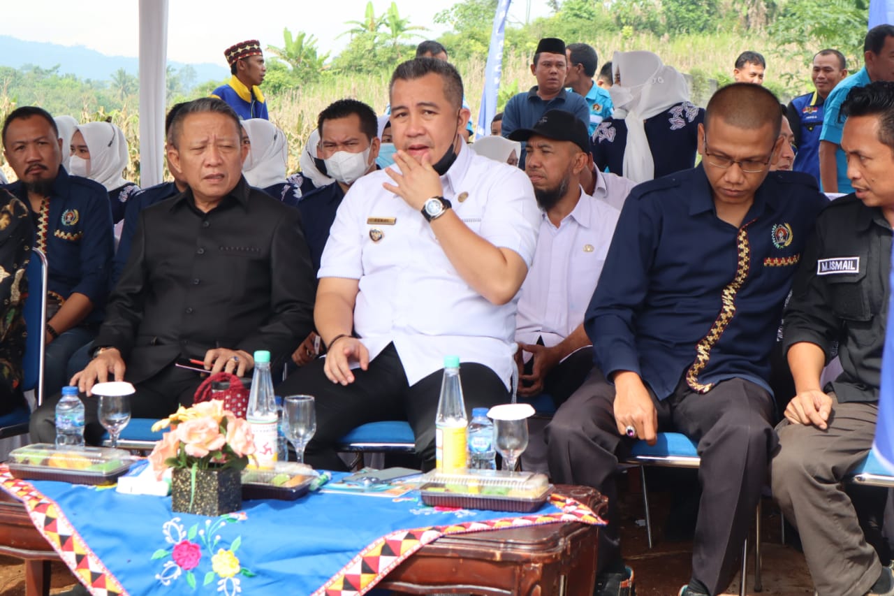 Pesawaran, SIBER88.CO.ID_Bupati Dendi Ramadhona memimpin peletakan batu pertama pembangunan Balai Wartawan Persatuan Wartawan Indonesia (PWI) Kabupaten Pesawaran di Kompleks kantor Pemkab setempat, Kamis (16/6/2022).