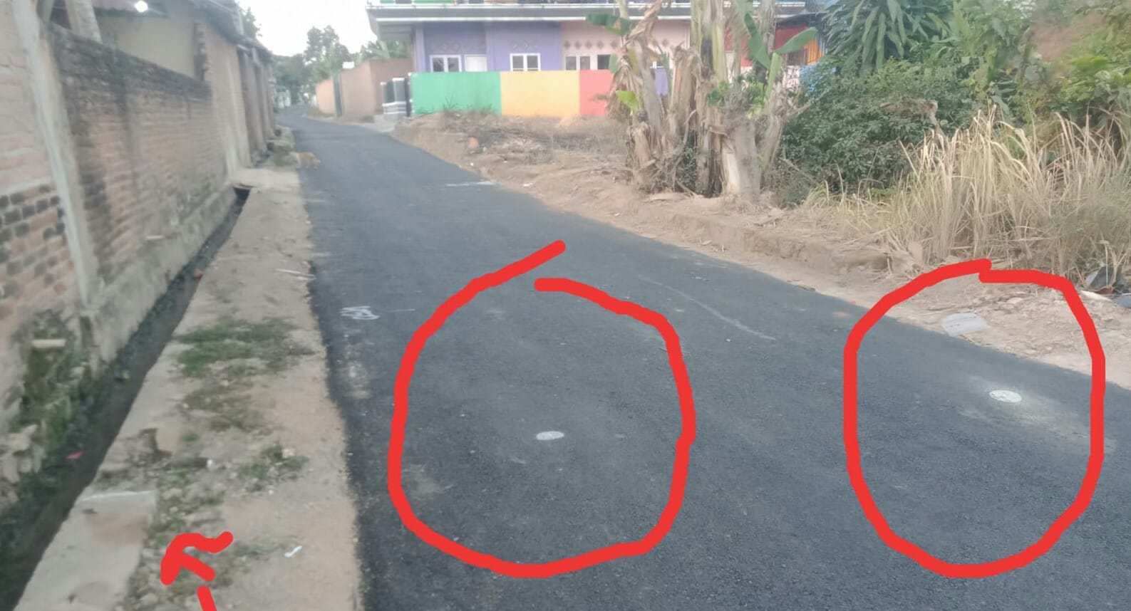 Hal itu terlihat dari tipisnya aspal dan tidak rata padahal baru sekitar sepuluh hari dikerjakan. Tentunya tidak sesuai dengan Rancangan Anggaran Biaya (RAB).