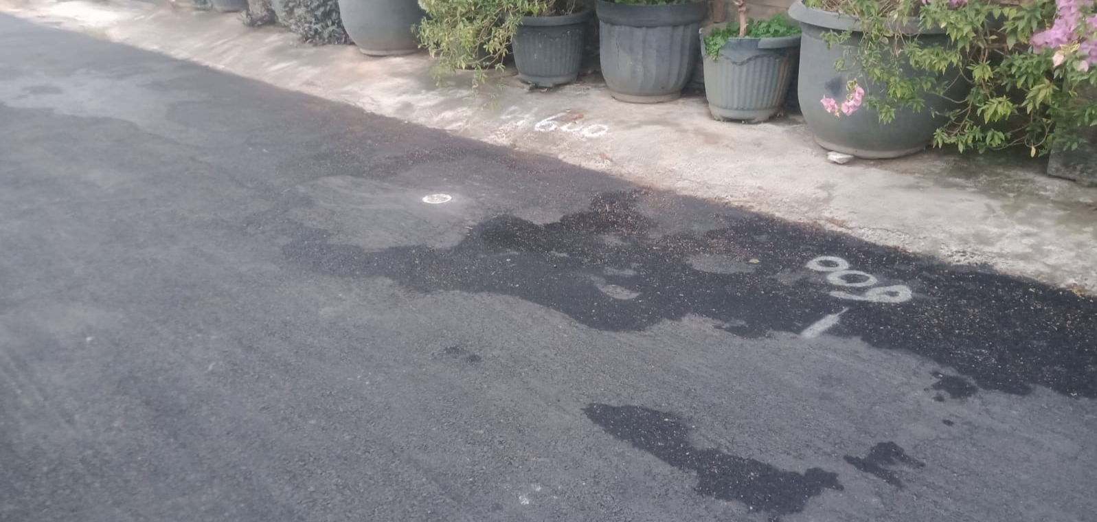 “Bisa kita lihat hasil pengaspalannya terlihat hanya tempat titik Cor Drilling saja yang nampak tebal tapi yang lainnya tipis,”tukasnya.