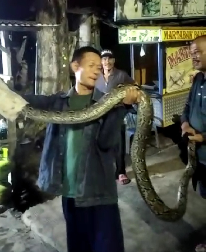 “Kalau Asal ular Pyton itu dari mana saya tidak tahu, kemungkinan dari area pemakaman ini naik ke pohon, ya syukur lah tidak ada orang yang lewat pas ular ini jatuh tapi saya merasa kaget karena pas jatuh di depan saya, kini ular Pyton tersebut di amankan di rumah warga rencananya akan di serahkan ke karantina, Badan konservasi hewan Liar,” jelasnya.
