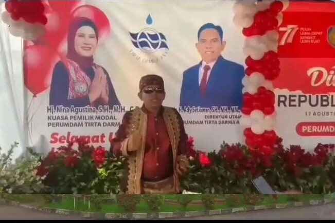 Disela kegiatan HUT RI ke-77, Direktur Utama (Dirut) Perumdam Tirta Darma Ayu, Dr.Dr. Ir. Ady Setiawan, SH., MH., MM.,MT mengucapkan selamat ulang tahun (Ultah) kepada pemilik tunggal Perumdam Tirta Darma Ayu sekaligus Bupati Indramayu, Hj. Nina Agustina, SH., MH., C.R.A yang ke-49.