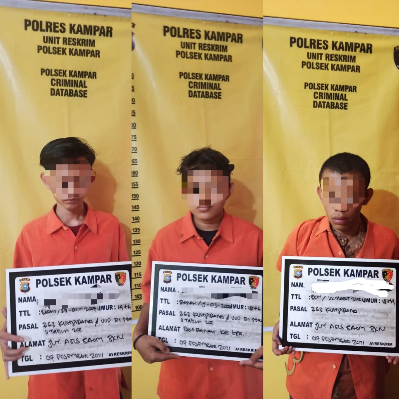 Warga Jl. Agussalim Kel. langgini Kec. Bangkinang, DP als DO (14) warga bangkinang Kec.Bangkinang, VA (16) warga Desa Ranah Kec.Kampar.