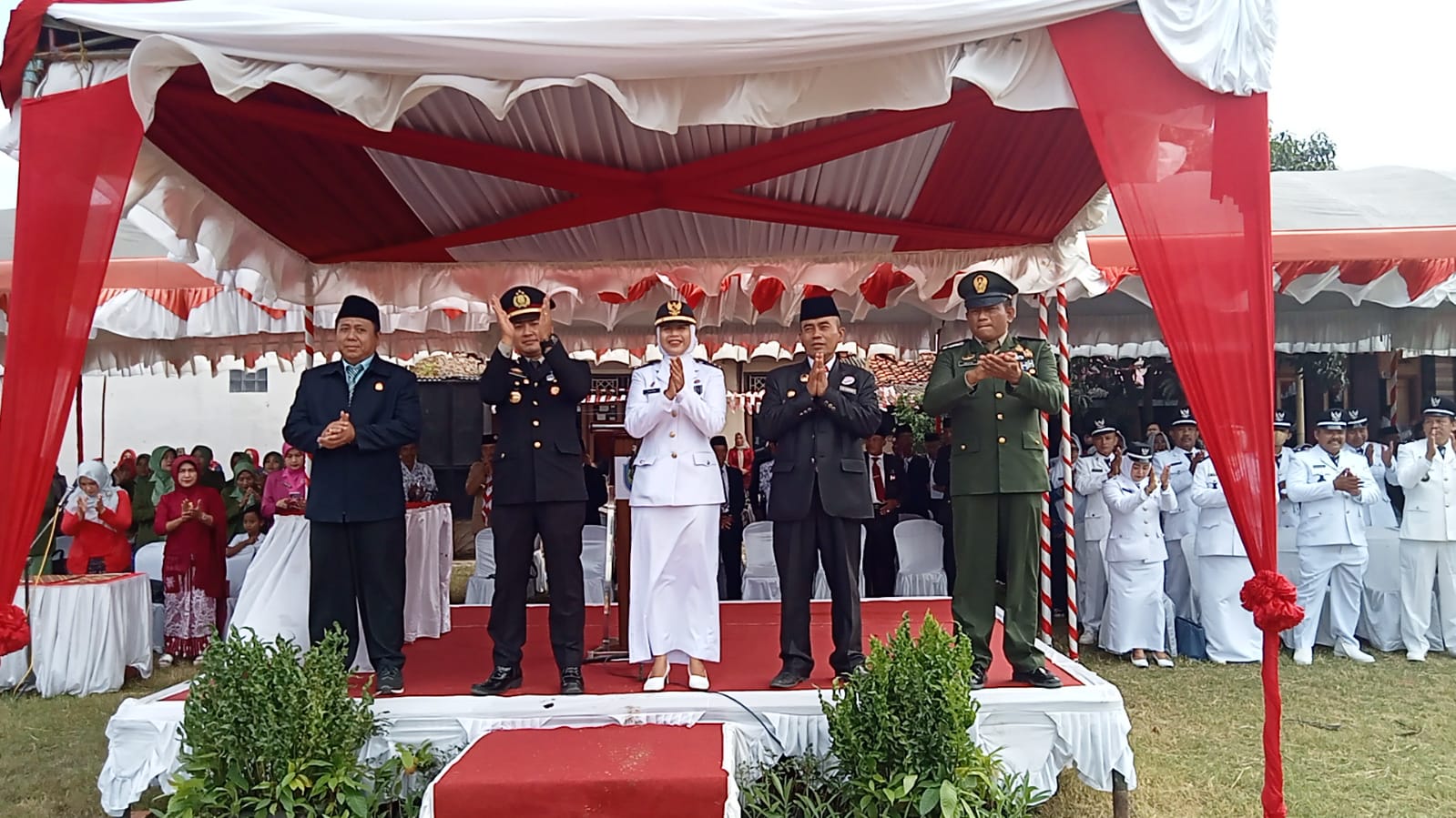 Jalannya upacara berlangsung hikmat dan tertib dihadiri berbagai lapisan masyarakat dari unsur TNI, POLRI, ASN, anggota DPRD Indramayu H Abdul Rohman SE MM dan H Rudin,Kuwu se kecamatan Sliyeg, tokoh agama dari MWCNU Sliyeg, peserta didik serta ormas kepemudaan yang ada dilingkungan kecamatan Sliyeg.(yyn)