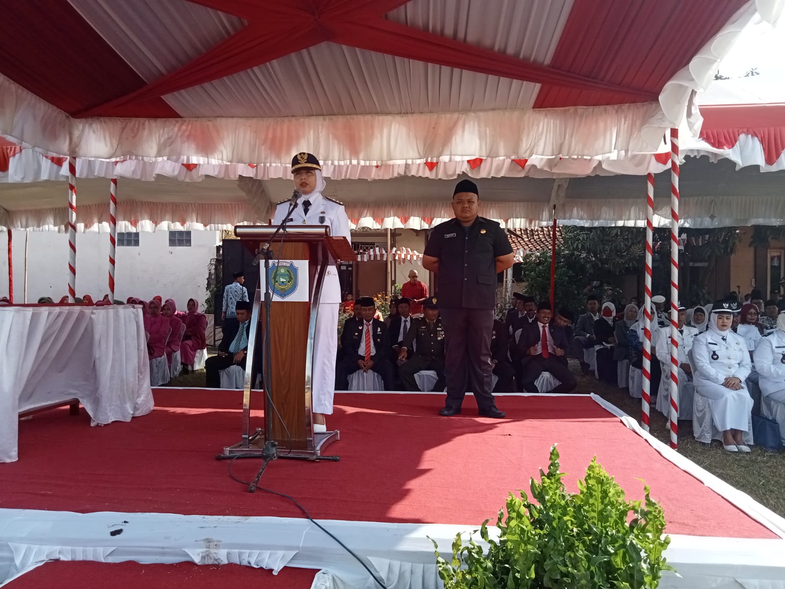Pada kesempatan amanat pembina upacara,Camat Endang Ismiati sendiri membacakan amanat Bupati Indramayu, Hj Nina Agustina SH MH CRA pada peringatan HUT RI ke 77 tahun 2022.
