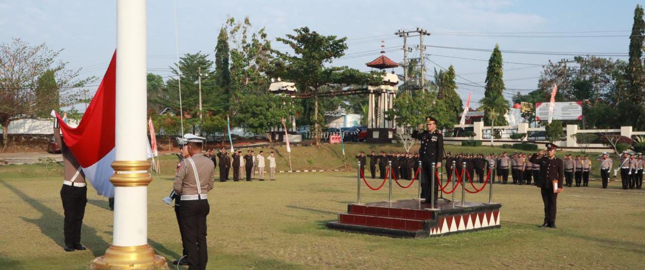 Upacara dipimpin oleh Waka Polres Lampung Utara, Kompol Yohanis, mewakili Kapolres Lampung Utara, AKBP Teddy Rachesna,dengan pesertanya Pejabat Utama (PJU) Polres, personel, ASN dan PHL Polres Lampung Utara.
