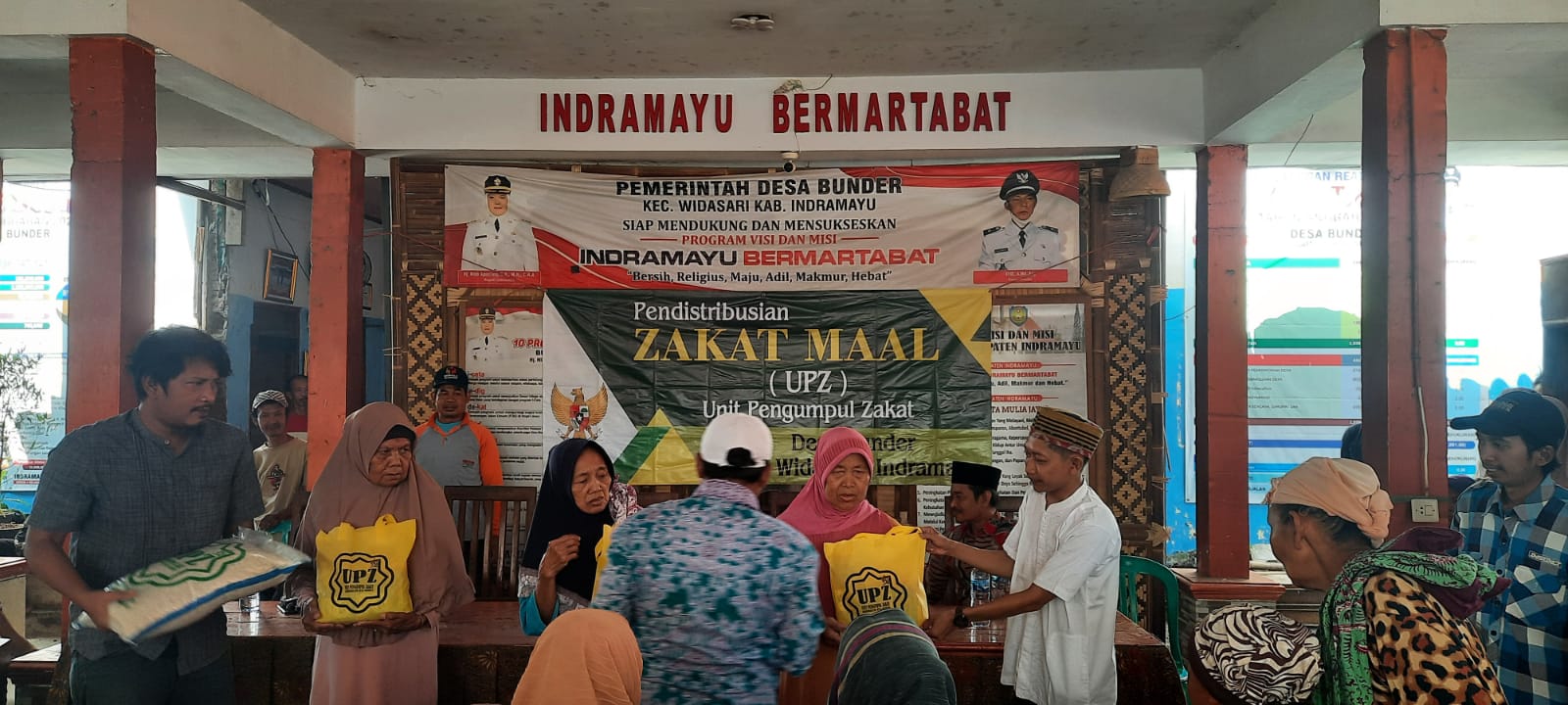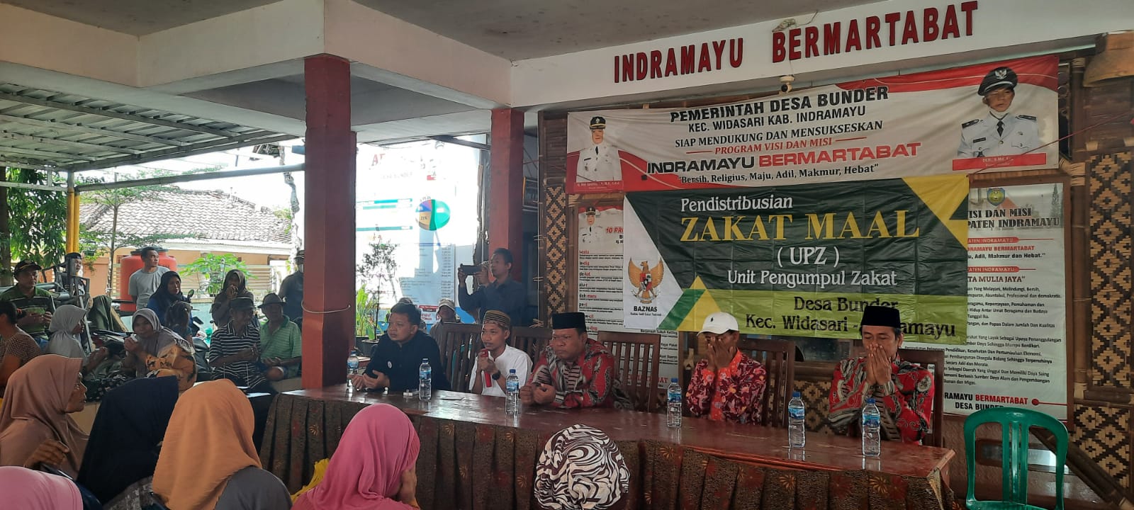 Pendistribusian zakat yang dihadiri oleh Aspuri SPd I MPd ketua Baznas kabupaten Indramayu,Sidik Tri Hartono AP MSi camat Widasari,H Jaka ketua UPZ desa Bunder,H Anas Ghozali SPd dan H Wartono perwakilan dari Muzaki.