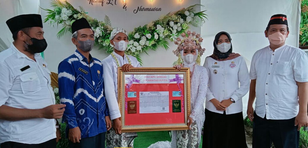 “Pernikahan Nurmawan dan Hanuf L yang melakukan pernikahan di wilayah Kecamatan Sliyeg dengan sentuhan program Dukcapil Berkah, ”ucap Surya.