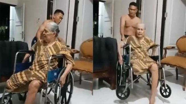 Nenek di atas kursi roda itu mencoba menasehati pria tersebut untuk tidak terus bertengkar dengan anaknya, namun pria tersebut tidak terima dan malah mencaci nenek pakai kursi roda tersebut dengan kata-kata tak mengenakkan.