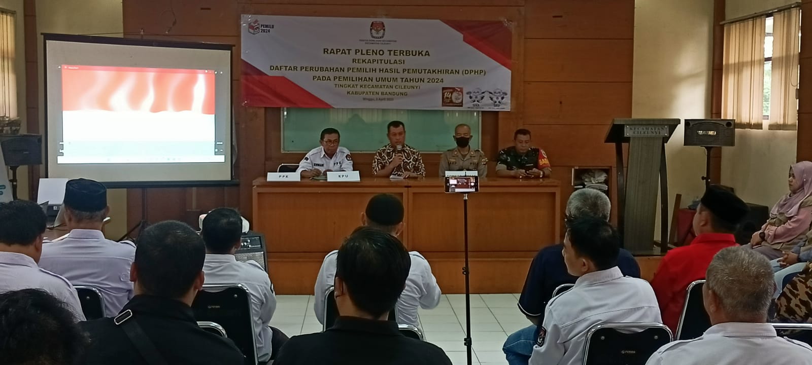 Bandung Jabar, SIBER88.CO.ID_Pelaksanaan Rapat Pleno Terbuka Rekapitulasi Daftar Pemilih Hasil Pemutakhiran (DPHP) Pada Pemilu 2024 di Aula Kantor Kecamatan Cileunyi dilaksanakan, minggu(02/04/2023 ).