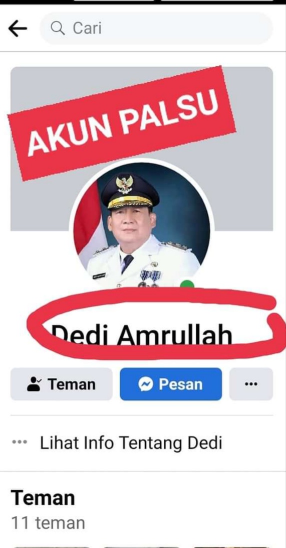 Deddy Amarullah “menyatakan di dalam postingan status FB, untuk semua warga kota Bandar Lampung, pengguna FB khususnya, ada Akun palsu yang mengatasnamakan dan menggunakan foto saya ujarnya