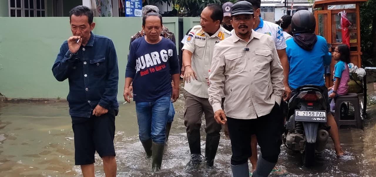 Walau Cuti,Lurah Abdul Bareng Forkopimcam Jatibarang Tinjau Banjir di Wilayahnya