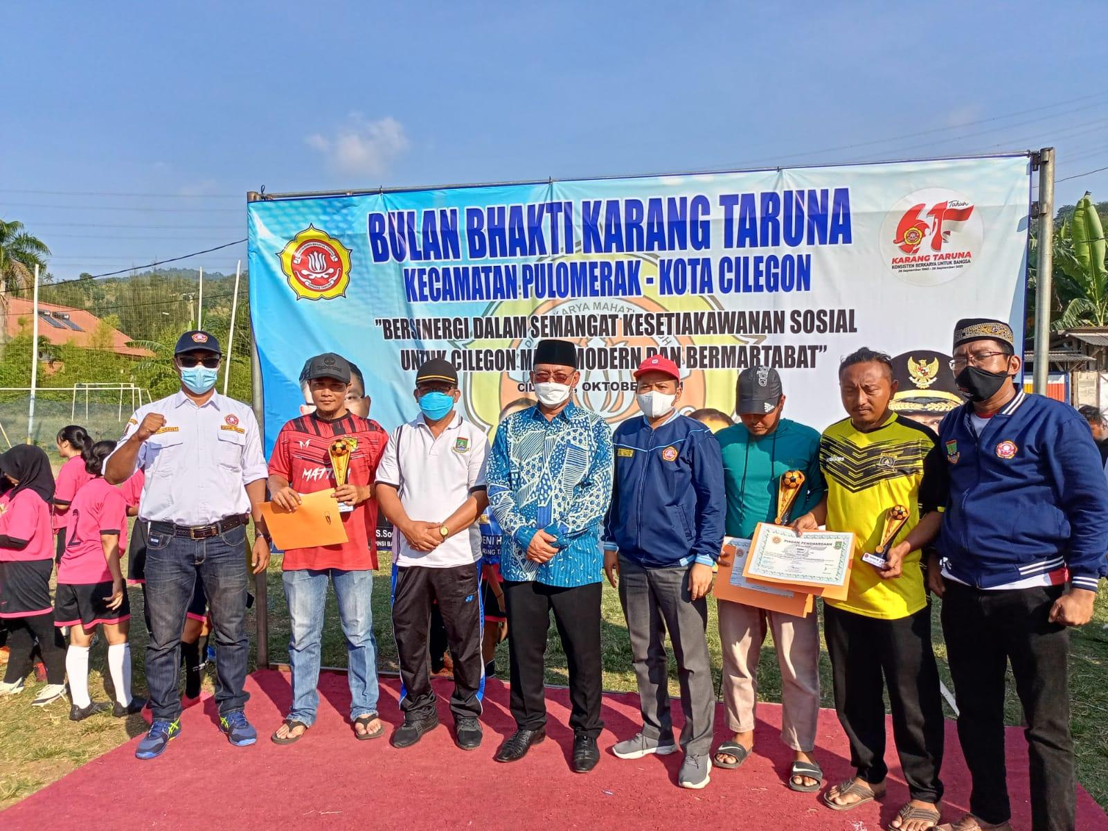 Menurut ketua karang taruna Kota Cilegon Mahdi mengatakan kepada awak media bahwa kegiatan bulan bakti karang taruna ke 61 dipusatkan di Karang Taruna kecamatan Pulo Merak Cilegon , dengan rangkaian acara yaitu memberikan puluhan santunan terhadap anak yatim-piatu ,kaum dhuafa dan melaksanakan kegiatan turnamen bola .