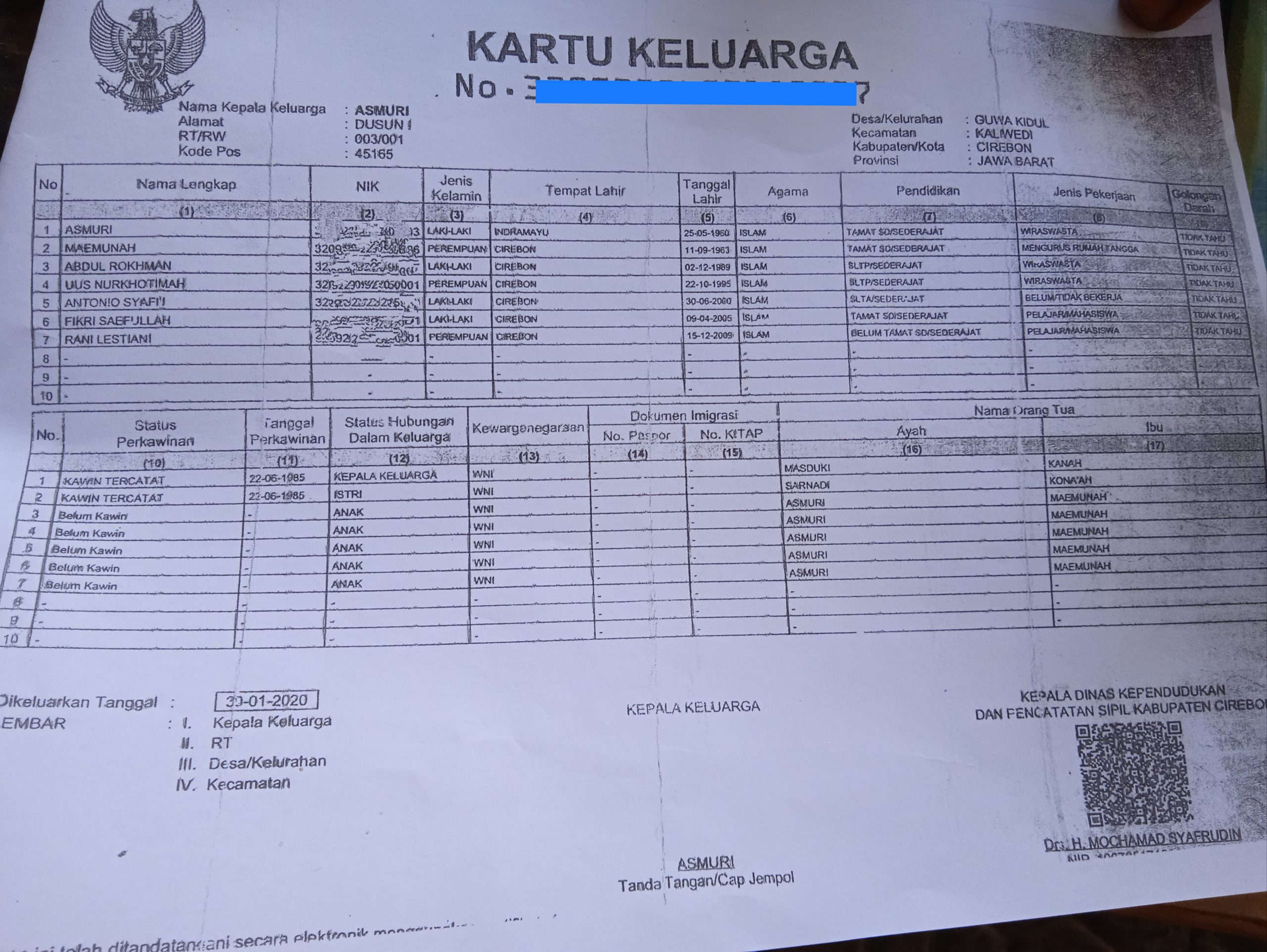 Diketahui bahwa anak perempuan Asmuri yang bernama Uus Nurkhotimah telah menikah dengan seorang laki-laki yang bernama Irfa’i pada tanggal 3 Juli 2022 sesuai dengan catatan nomor akta nikah 198/109/VII/2022 pada KUA kecamatan Kaliwadi kabupaten Cirebon. (Bzz)