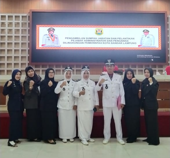 Selain lurah dan Camat Walikota Bandar Lampung Eva Dwiana melantik 3 Sekertaris Kecamatan (Sekcam), 1 Kepala Bidang (Kabid) dan 33 Kepala Seksi. (Suhendra)