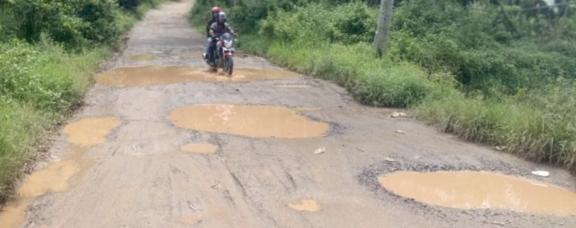 ” Jalan ini pernah diperbaiki pada tahun 2017 tapi sekarang udah hancur lagi, apalagi saat musim hujan banyak genangan air pengendara yang melintas di jalan ini harus hati-hati karena jalannya licin dan becek,” ujarnya Kamis, (2/5/2024)