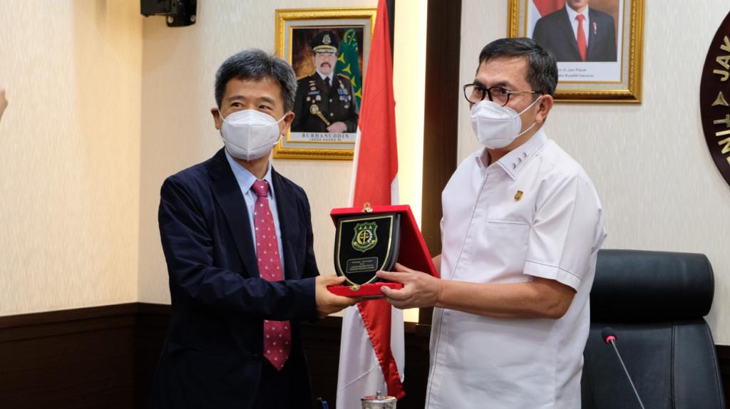 Pertemuan antara Jaksa Agung Muda Tindak Pidana Umum (JAM-Pidum) Dr. Fadil Zumhana dengan Konsul Jenderal Korea Selatan Mr. Lee In-Gyu dilaksanakan dengan menerapkan protokol kesehatan. (Bzz)