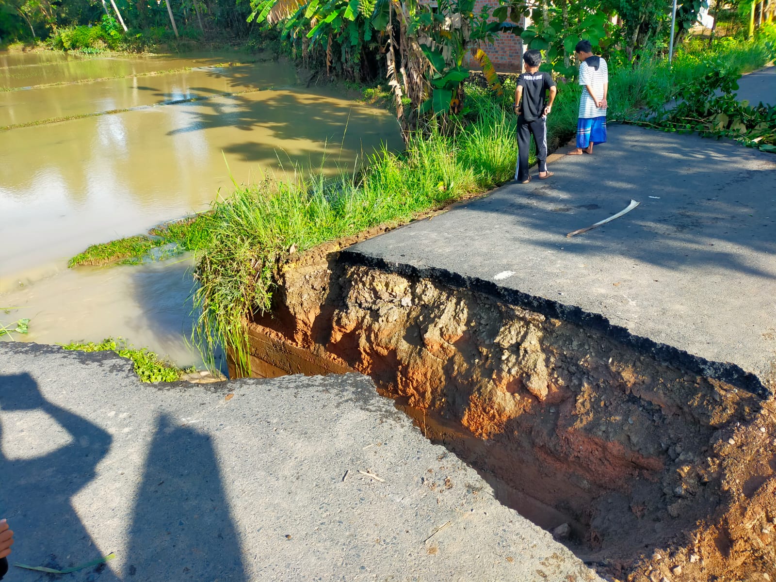 Lampung Selatan, SIBER88.CO.ID_Kamis tg 9-12-2021 hujan lebat yang berdebit sangat besar, terjadi erusi tanah mengakibatkan putusnya jalan penghubung Jati Agung menuju kecamatan Tanjung Sari, yang merupakan jalan penghubung jalan, Nasional Ir Sutami yang bertujuan ke Lampung Timur