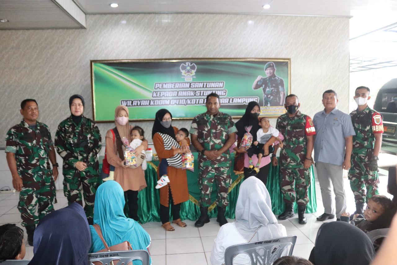 Bandar Lampung, SIBER88.CO.ID_Komando Distrik Militer 0410/KBL menggelar kegiatan pemberian santunan kepada anak Stunting yang ada di wilayah Kota Bandar Lampung.