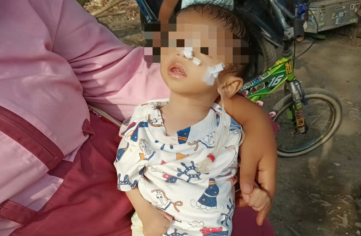 Akibat penyakit yang dideritanya, balita bernama Muhammad Yusuf Agustian tersebut harus mendapatkan asupan makanan dari selang yang dipasang di hidungnya.