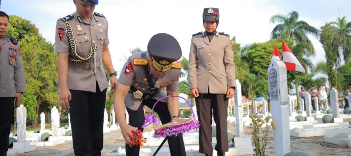 Usai pelaksanaan upacara, Kapolda dan rombongan melakukan tabur bunga di makam para pahlawan dan memberi doa sebagai bentuk penghormatan dan mengenang jasa-jasanya terhadap kemerdekaan negara republik Indonesia.